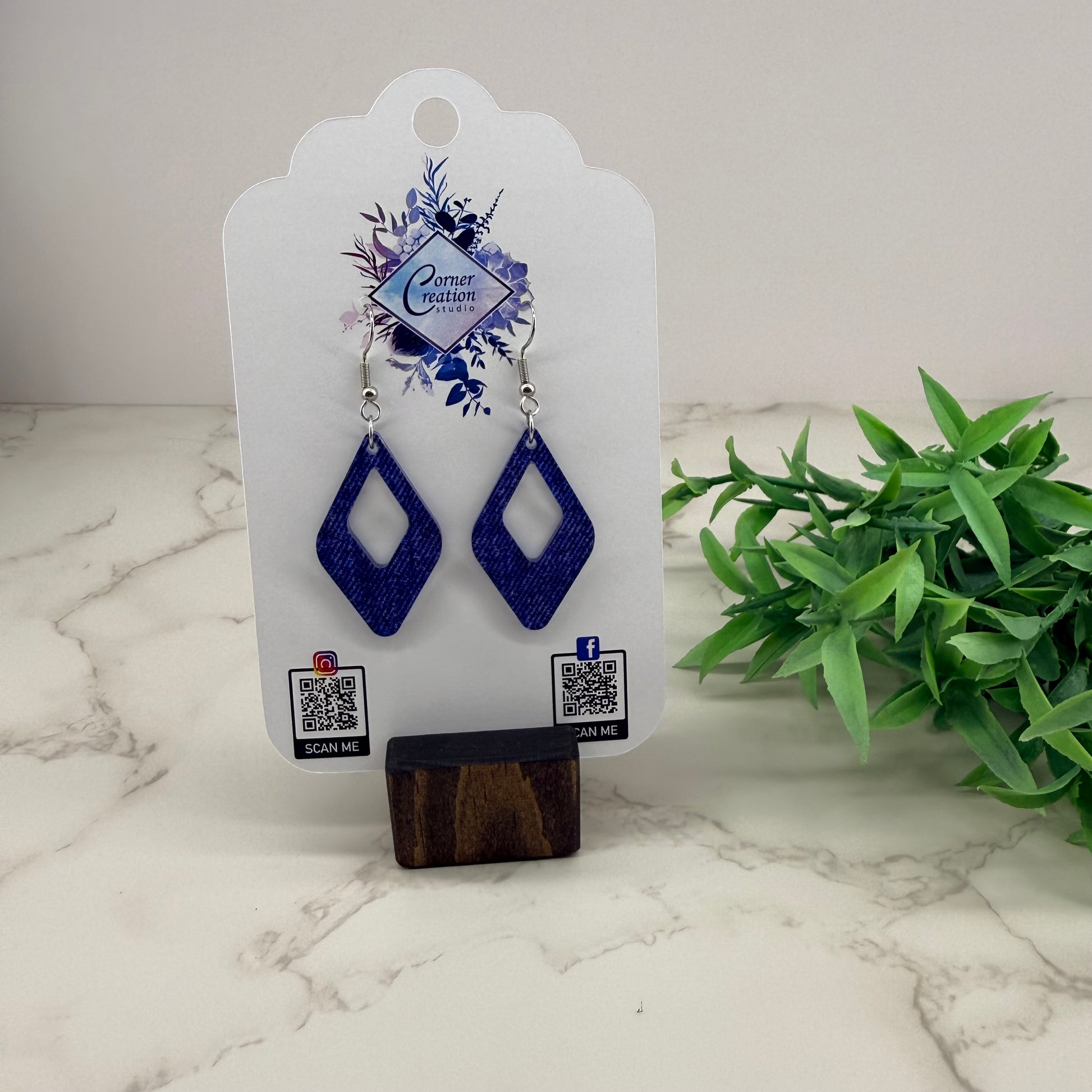 Add a pop of cool with these Blue Jean color earrings! Featuring vibrant blue tones that mimic your favorite denim, each pair is finished with durable stainless steel hardware for a comfortable, long-lasting wear. Perfect for adding a fun, casual vibe to any outfit, these earrings bring playful style wherever you go.