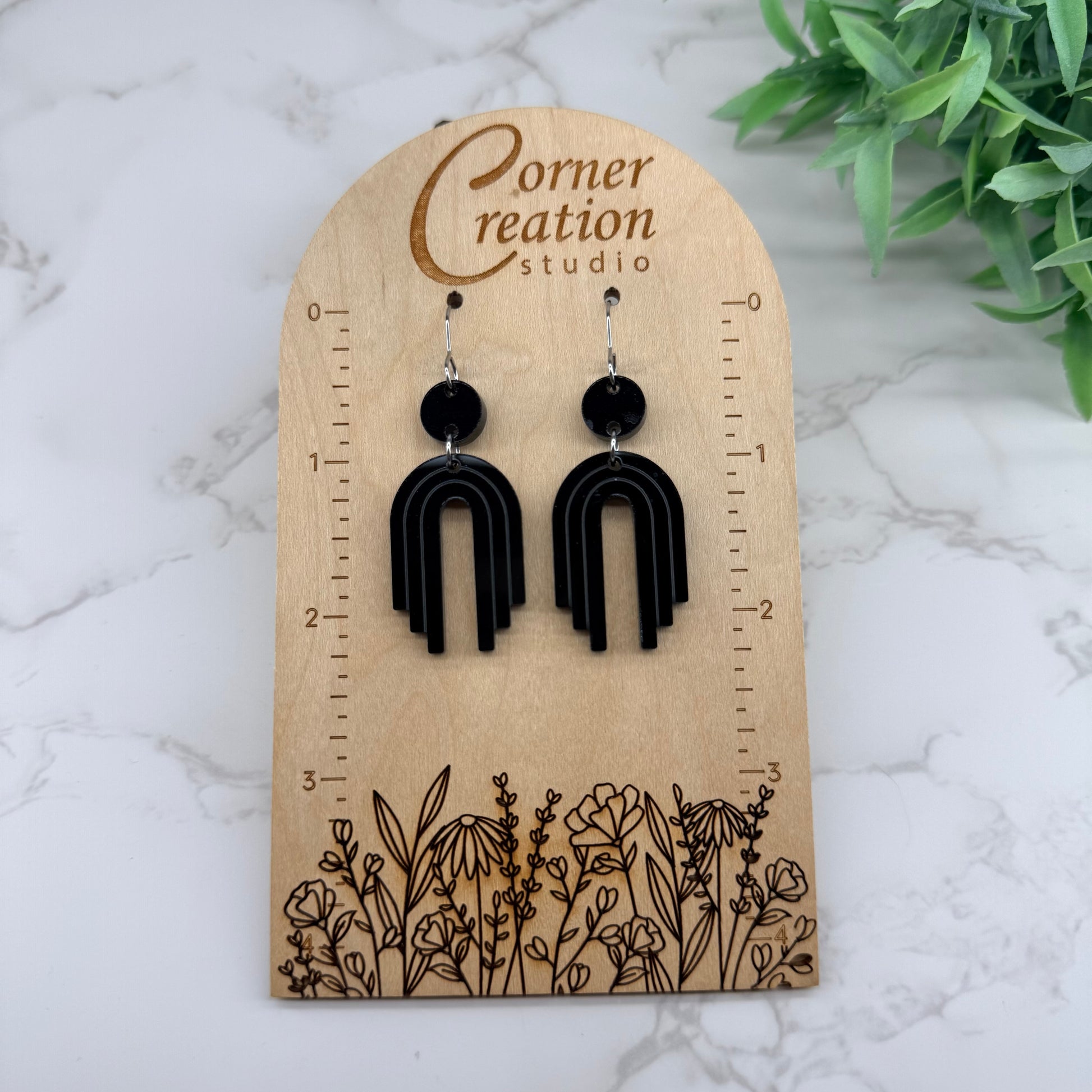 Add a touch of mystery and elegance with these Deep Arch Black Earrings. Featuring sleek stainless steel hardware. Perfect for playful days or glamorous nights, these earrings elevate any outfit with a subtle arch of charm and shine.