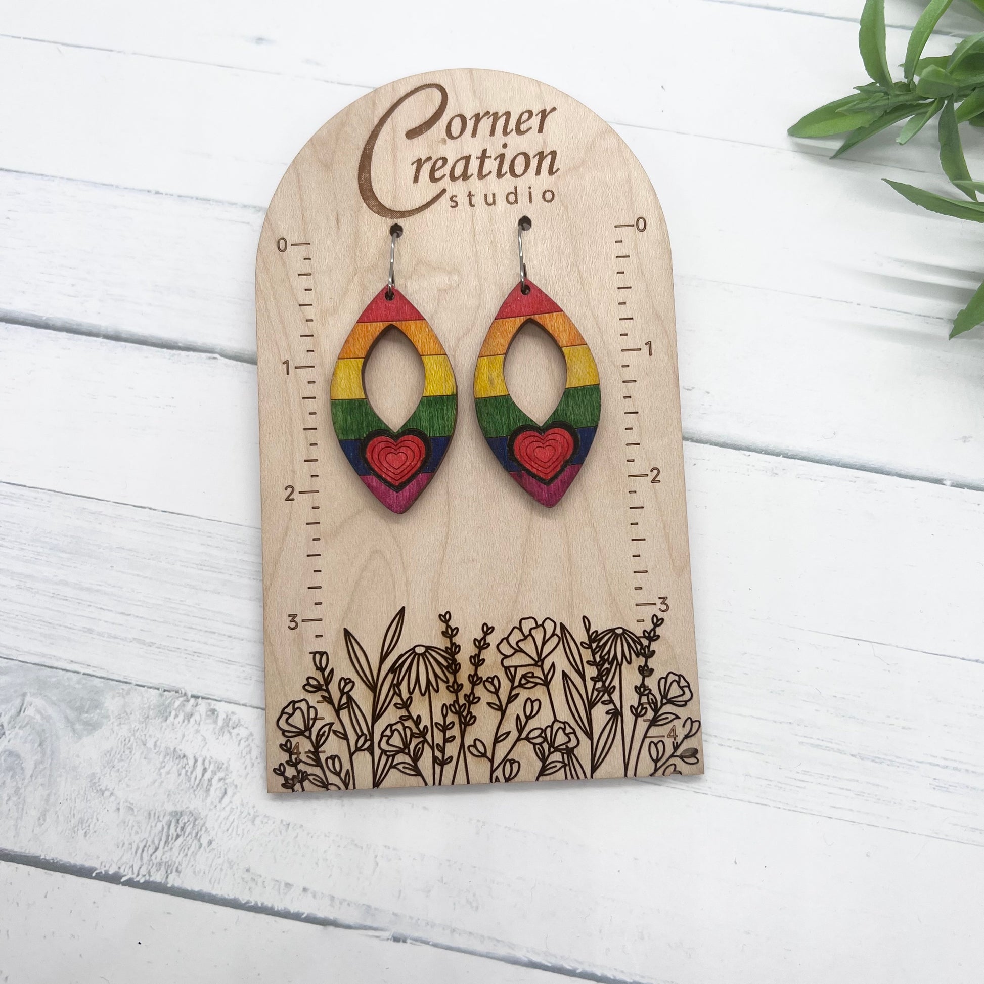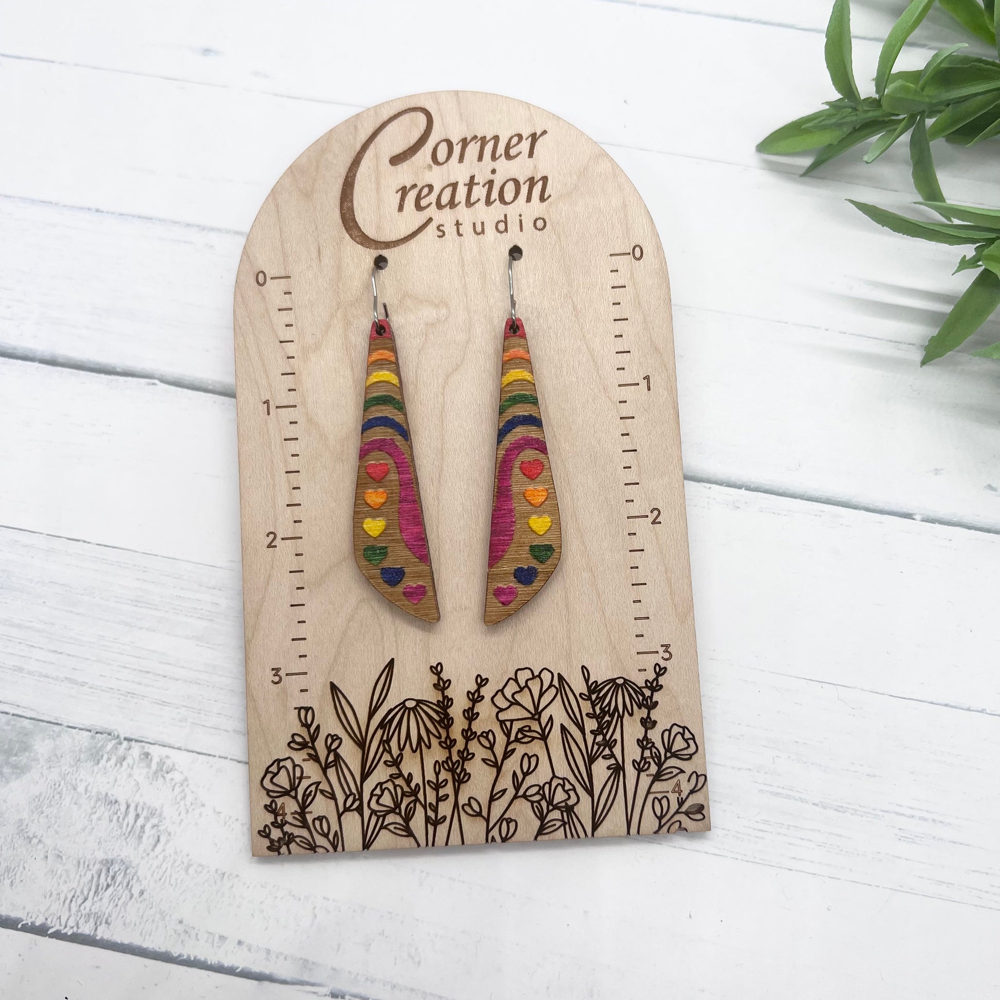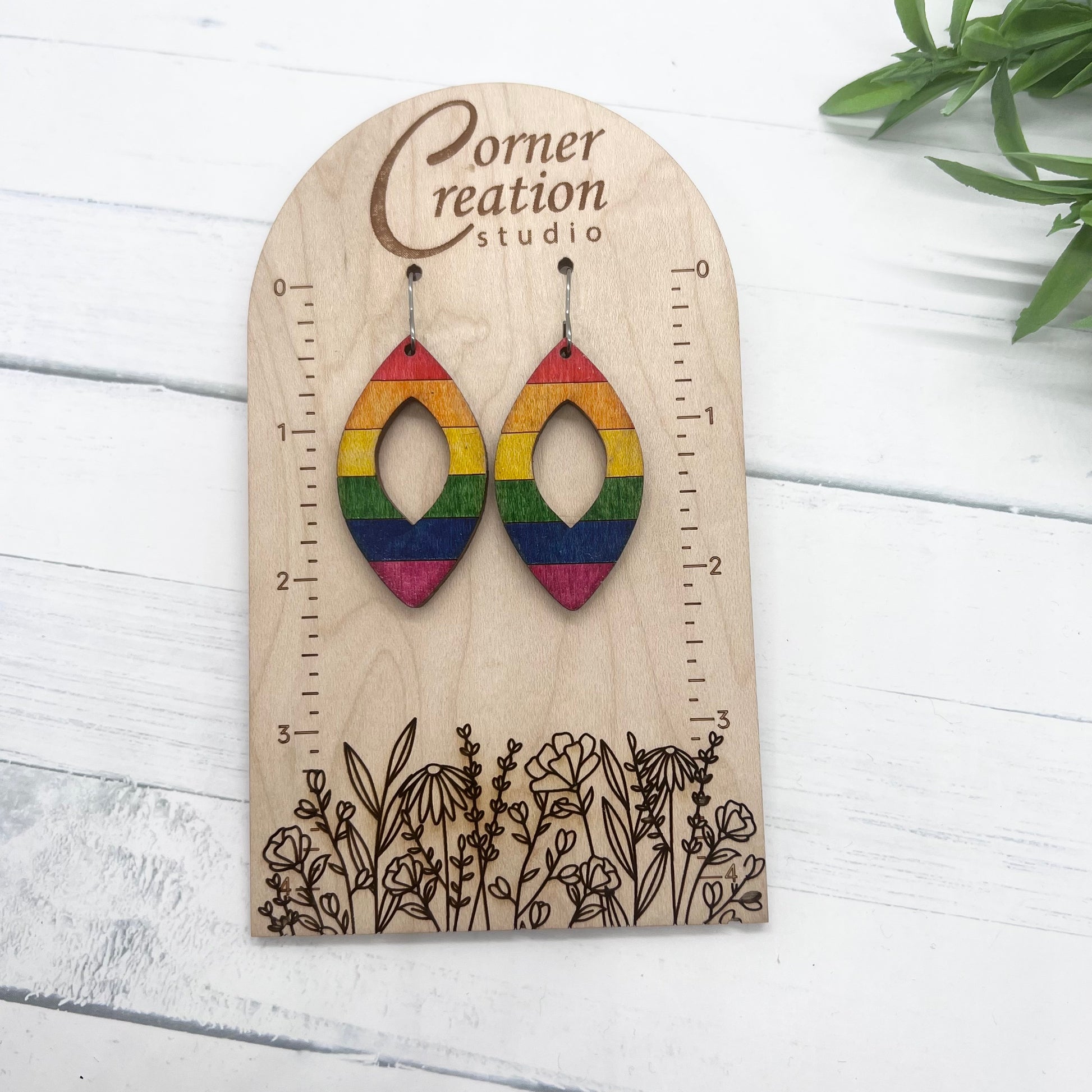 These beautiful rainbow pride earrings are hand painted wood.