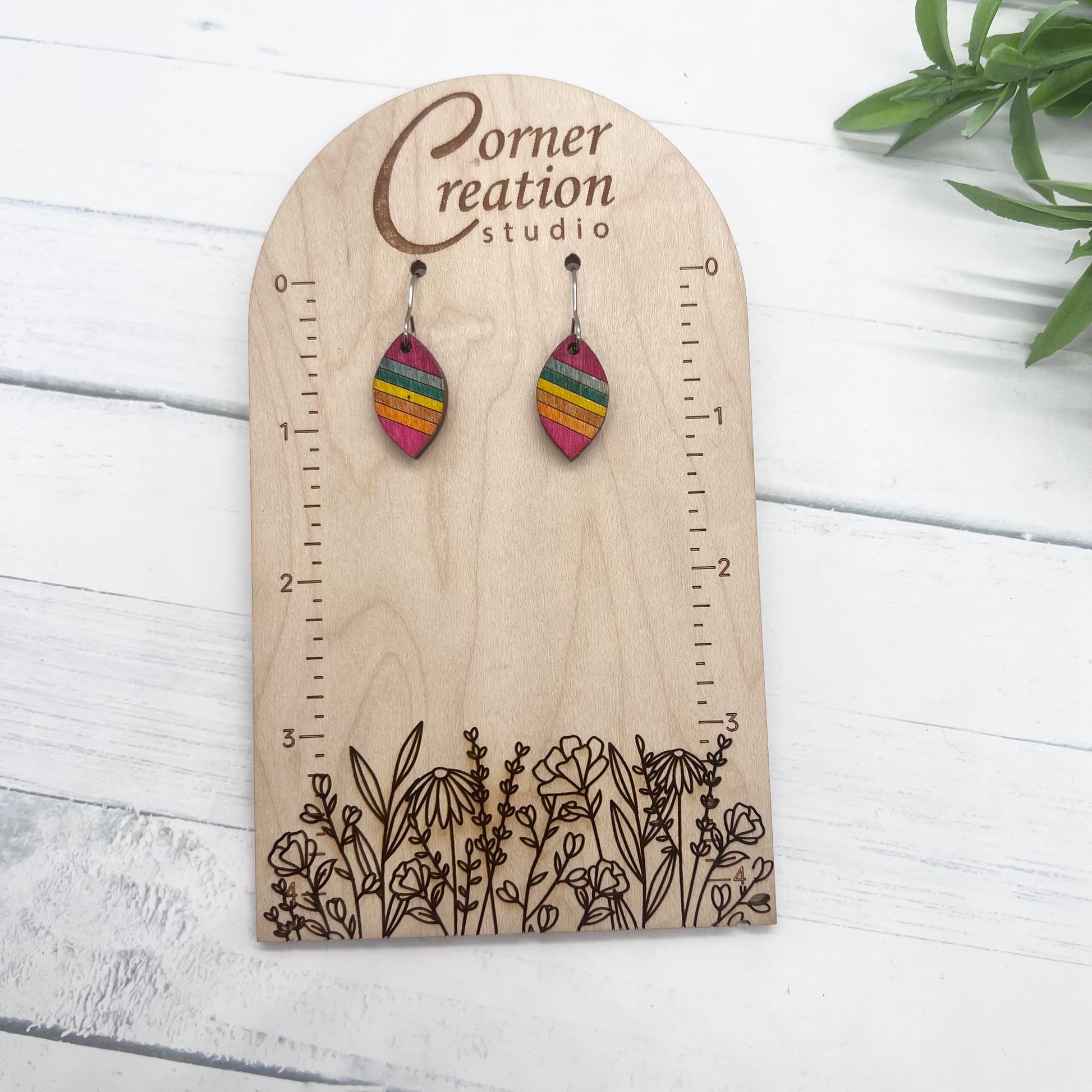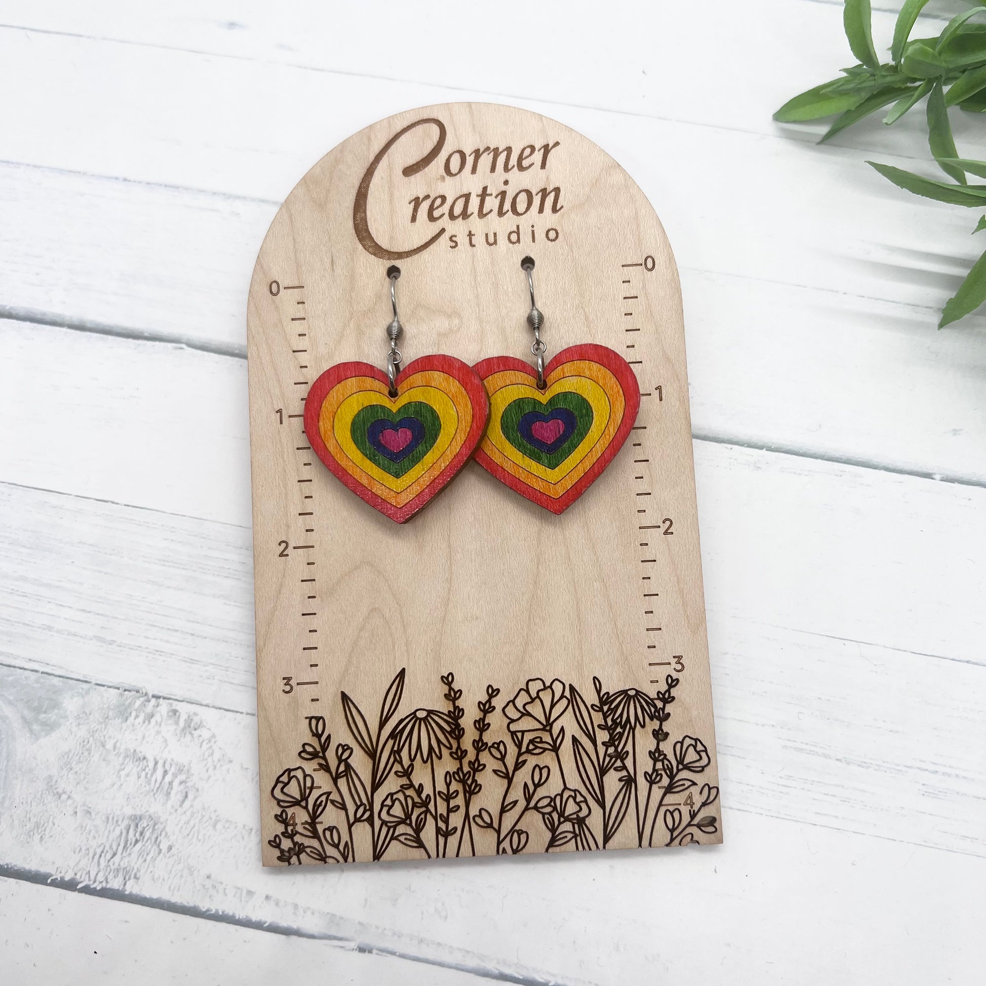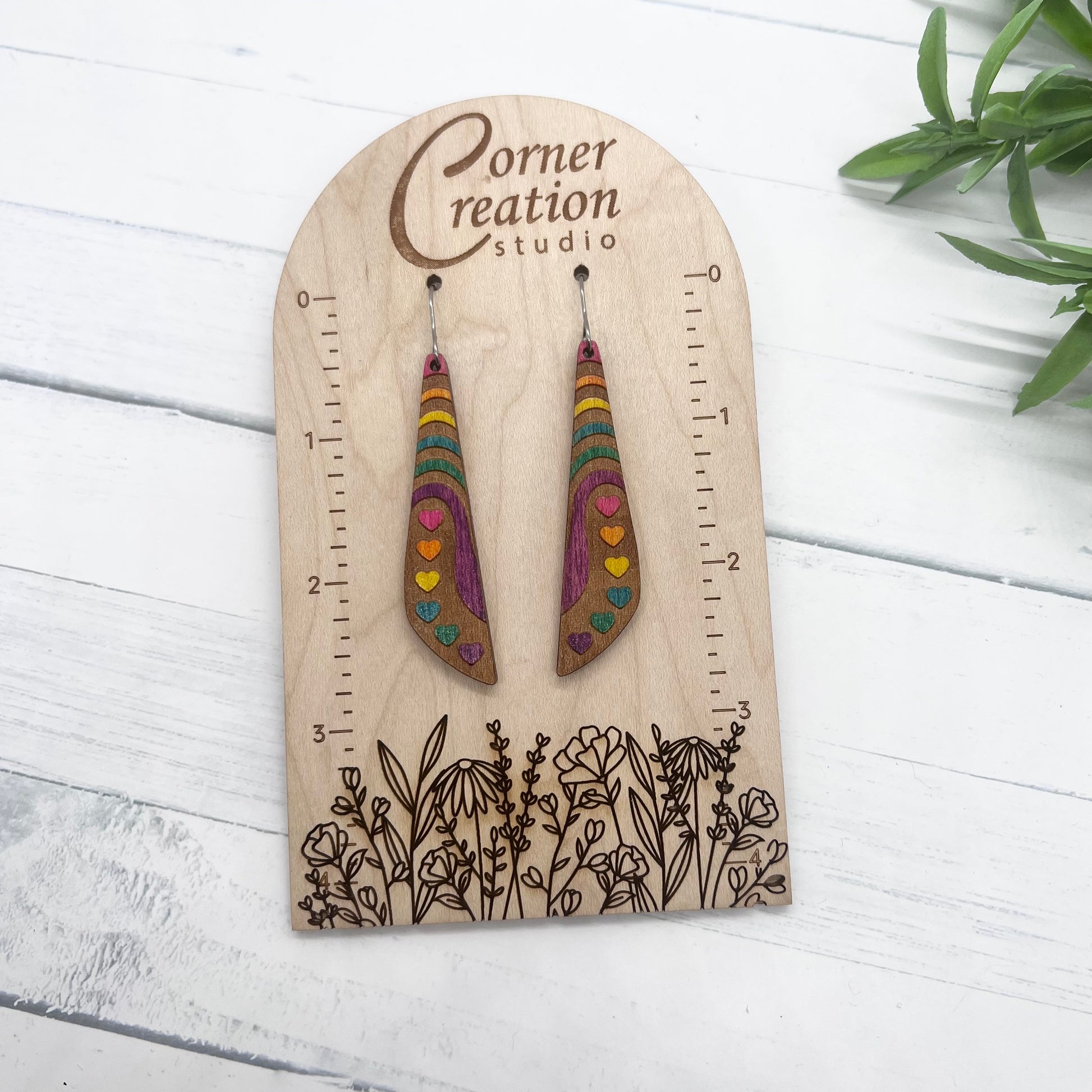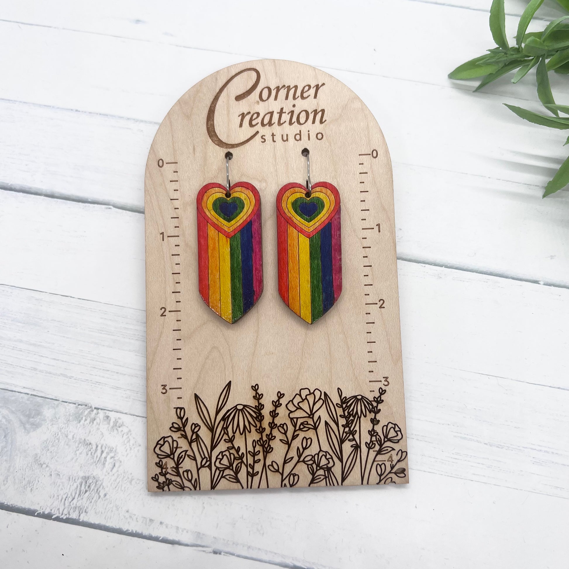 These beautiful rainbow pride earrings are hand painted wood.