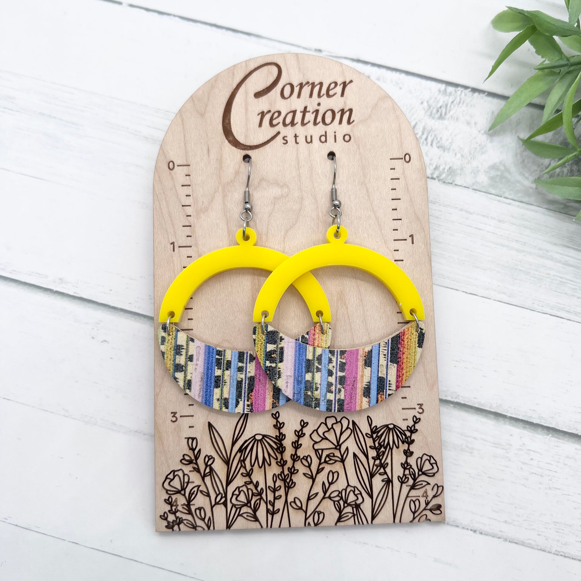 These beautiful boho half circle earrings are made with acrylic and leather.